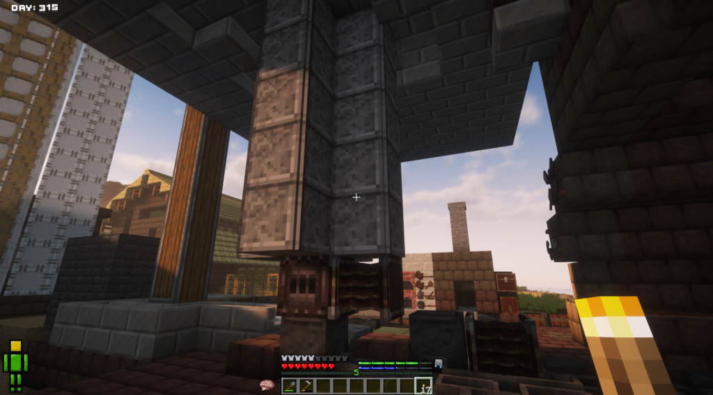 をオフハンドにハンマーを持ちながら足場ブロックに4つずつ右クリックではめていきます