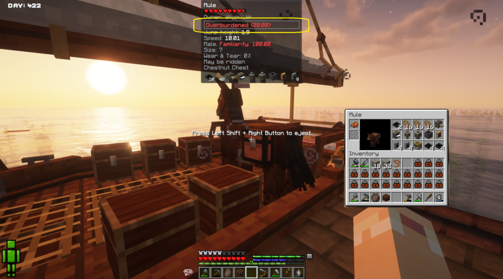 Very Heavy1個だけで過積載で動けなくなるんですが、船に乗せてからアイテムを詰め込めば超優秀なコンテナに!!!